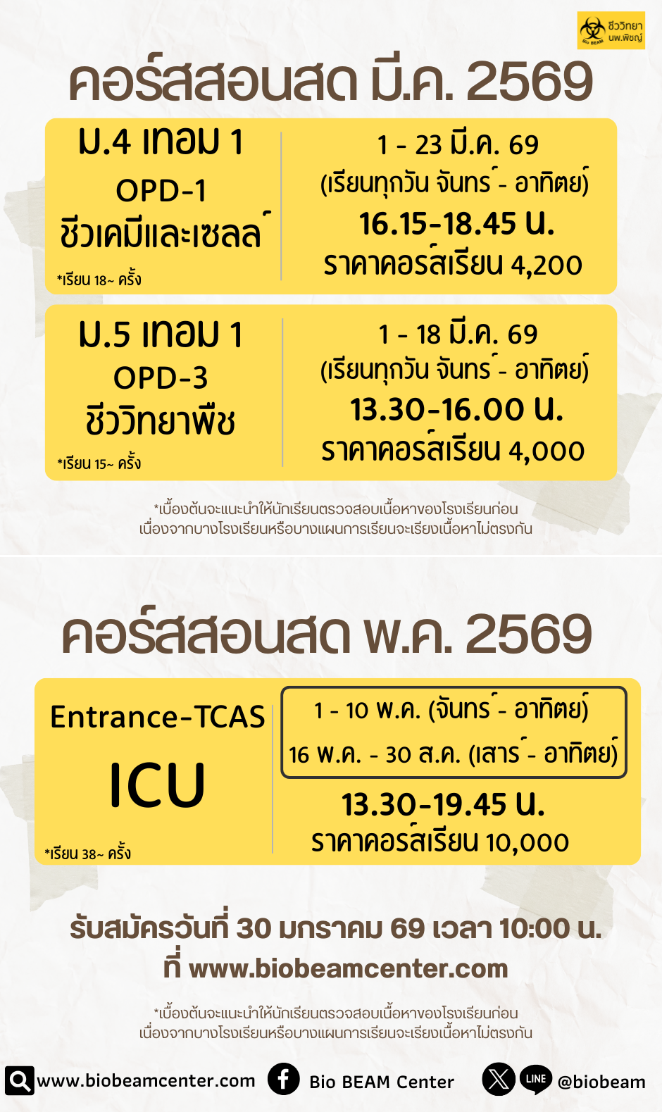 ตารางเรียนคอร์สสอนสด สาขาพญาไท
